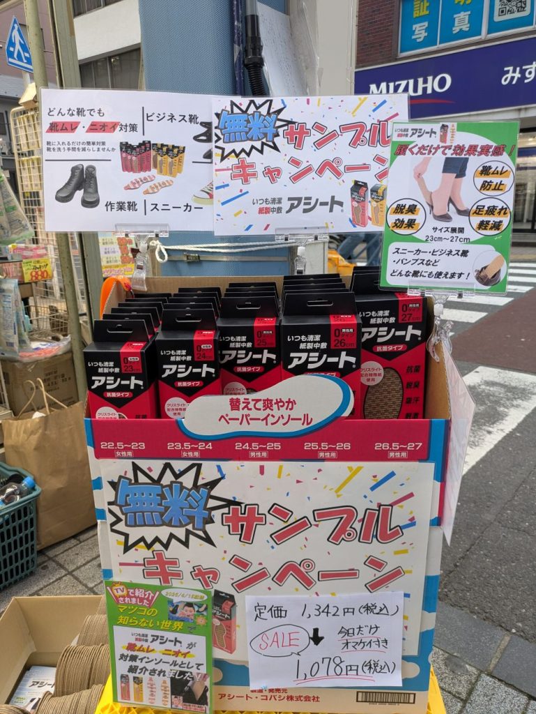 店頭での実演販売は13日のみでしたが、昭和薬品神田駅西口本店様では店内にてアシートを下記のように展開しております。