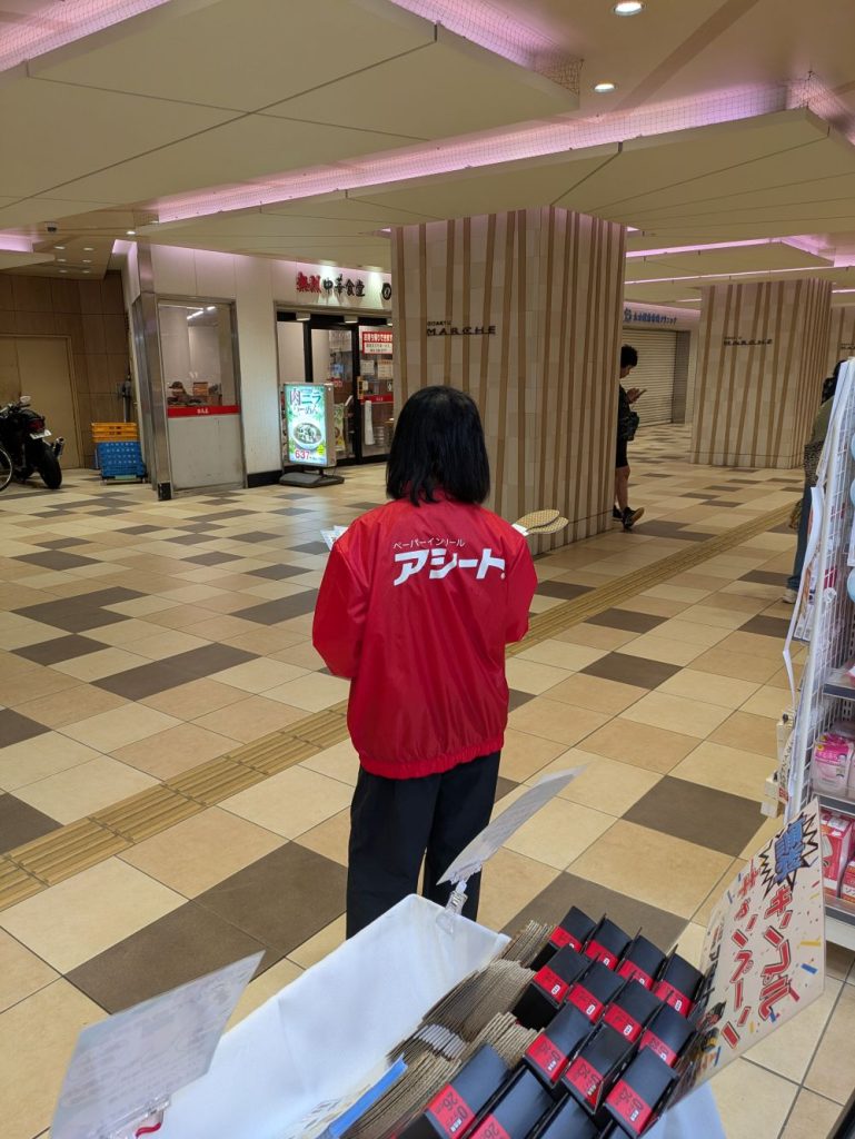 今回は私ではなく、いつもアシートの実演販売を行っているスタッフさんに販売をお願いしております。