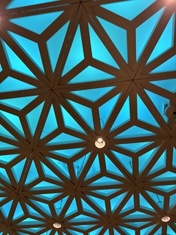 組子で出来ていて、ブルーのライトで伝統とモダンが合わさった素敵な空間となっていました。